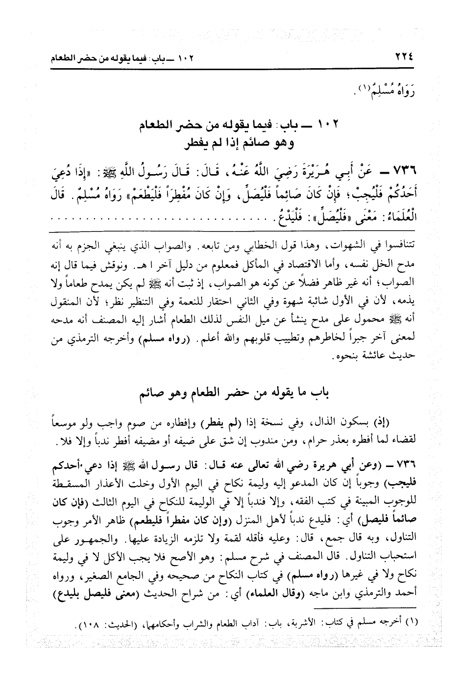 102 - باب ما يقوله من حضر الطعام وهو صائم
