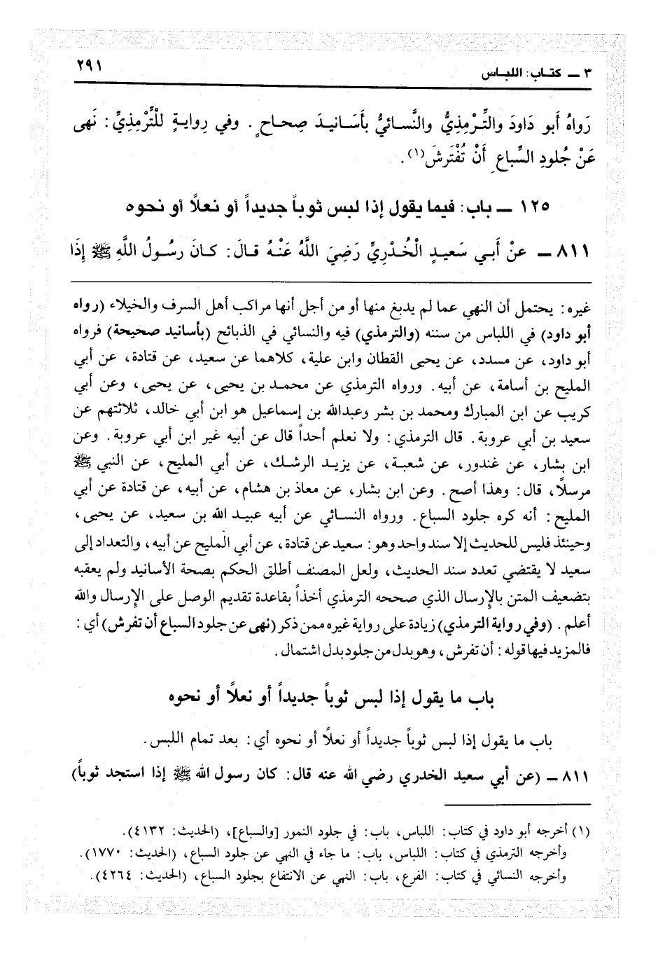 125 - باب ما يقول إذا لبس ثوباً جديداً أو نعلاً أو نحوه