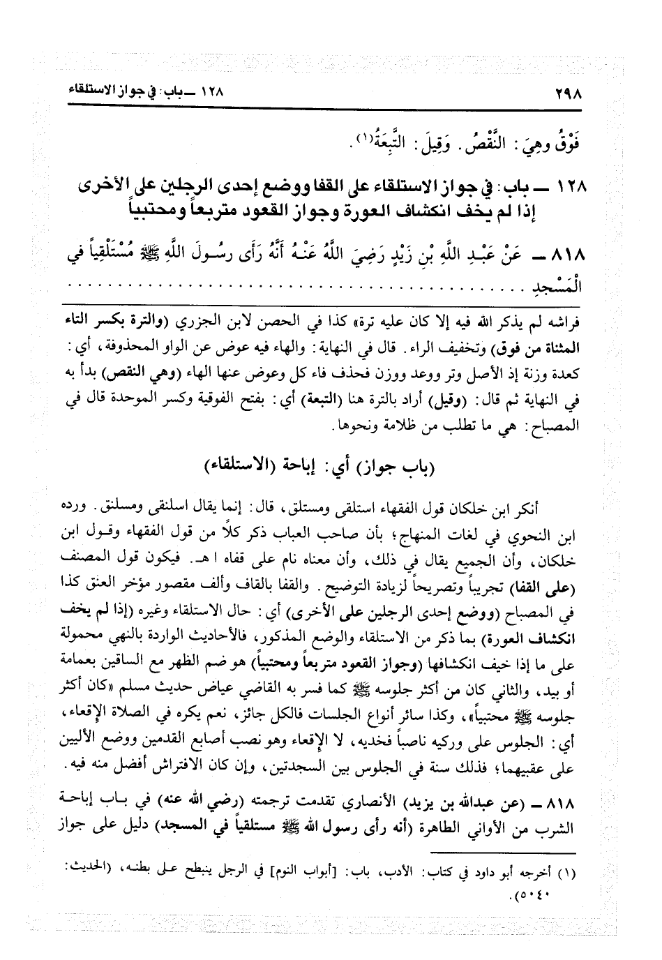 128 - باب جواز أي إباحة الاستلقاء