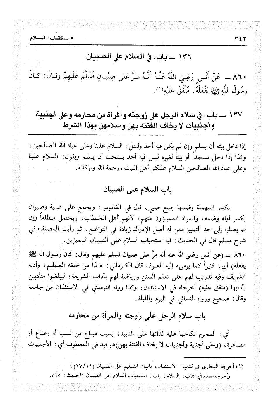 137 - باب سلام الرجل على زوجته والمرأة من محارمه