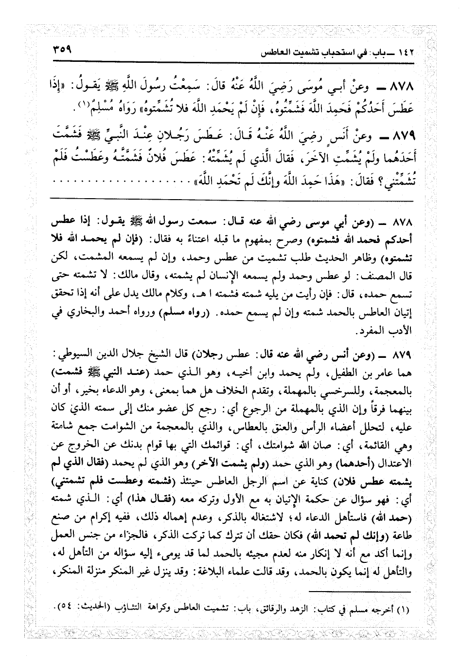 4881 - (وعن أنس رضي الله عنه قال: عطس رجلان) قال الشيخ جلال الدين السيوطي هما عامر بن الطفيل ولم يحمده وابن أخيه وهو الذي حمد (عند النبي فشمت) بالمعجمة وللسرخسي بالمهملة، وتقدم الخلاف هل هما بمعنى وهو الدعاء بخير أو أن بينهما فرقاً، وأن الذي بالمهملة من الرجوع: أي رجع كل عضو منك إلى سمته الذي كان عليه لتحلل أعضاء الرأس والعتق بالعطاس، والذي بالمعجمة من الشوامت جمع شامتة وهي القائمة: أي صان الله شوامتك: أي قوائمك التي بها قوام بدنك عن الخروج عن الإعتدال (أحدهما) وهو الذي حمد (ولم يشمت الآخر) وهو الذي لم يحمد (فقال الذي لم يشمته: عطس فلان) كناية عن اسم الرجل العاطس حينئذ (فشمته وعطست فلم تشمتني) أي فهو سؤال عن حكمة الإتين به مع الأول وتركه معه (فقال هذا) أي الذي شمته (حمد الله) فاستأهل الدعاء له لاشتغاله بالذكر وعدم إهماله ذلك ففيه إكرام من صنع طاعة (وإنك لم تحمد الله) فكان حقك أن تترك كما تركت الذكر فالجزاء من جنس العمل، وإنما أكد مع أنه إنكار منه لعدم مجيئه بالحمد لما قد يومىء إليه سؤاله من التأهيل له إنما يكون بالحمد، وقد قالت علماء البلاغة: وقد ينزل غير المنكر منزلة المنكر