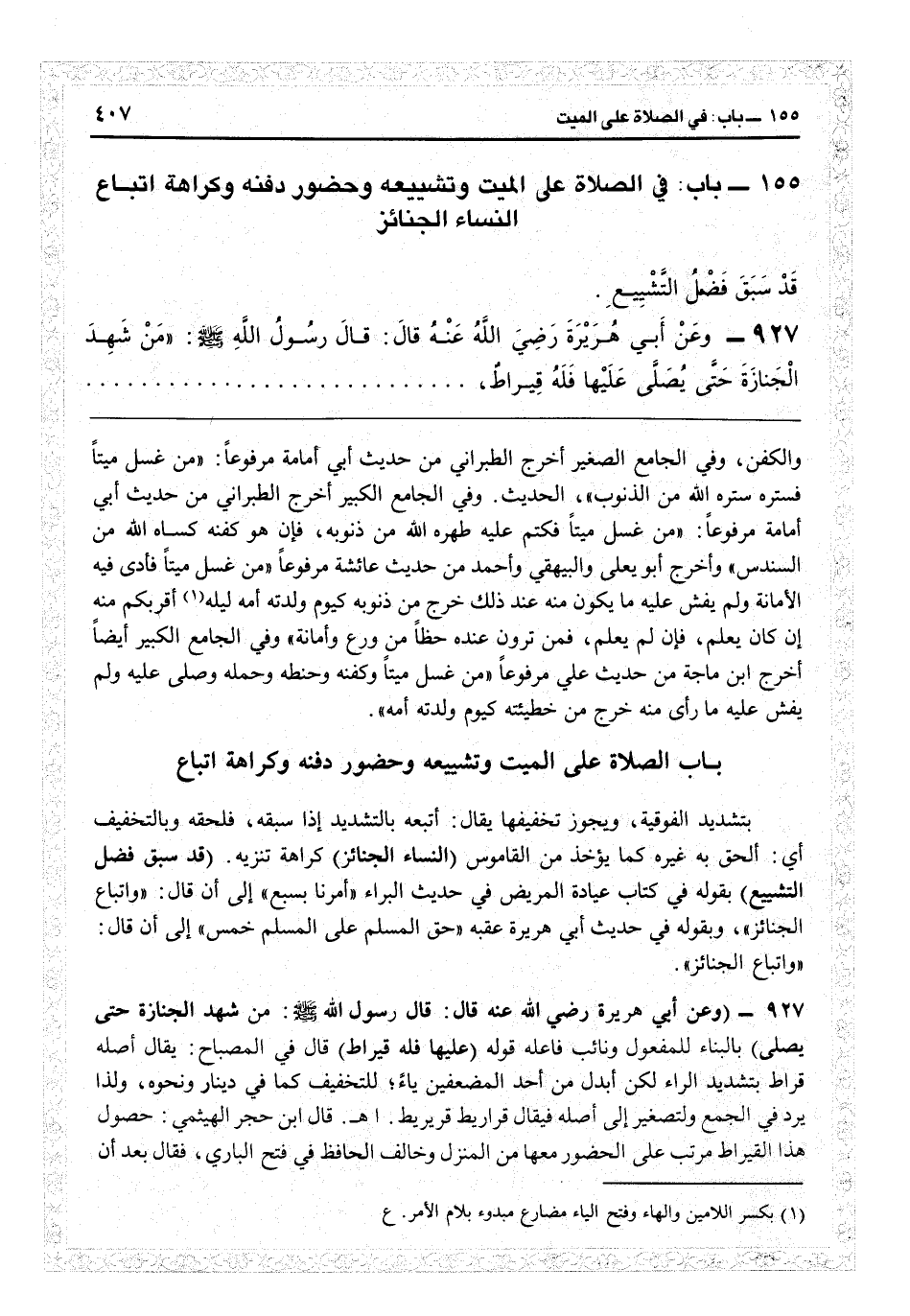 155 - باب الصلاة على الميت وتشييعه وحضور دفنه وكراهة اتباع