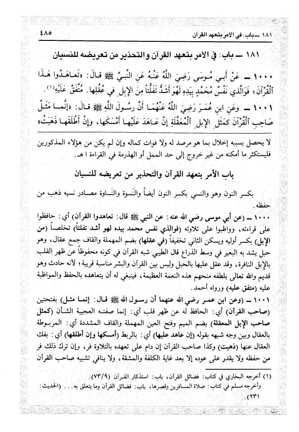 181 - باب الأمر بتعهد القرآن والتحذير من تعريضه للنسيان