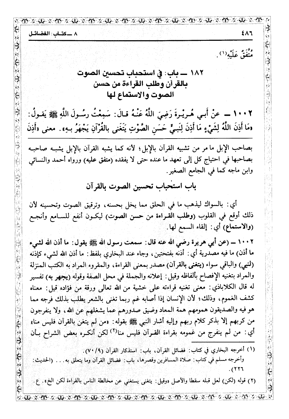 182 - باب استحباب تحسين الصوت بالقرآن