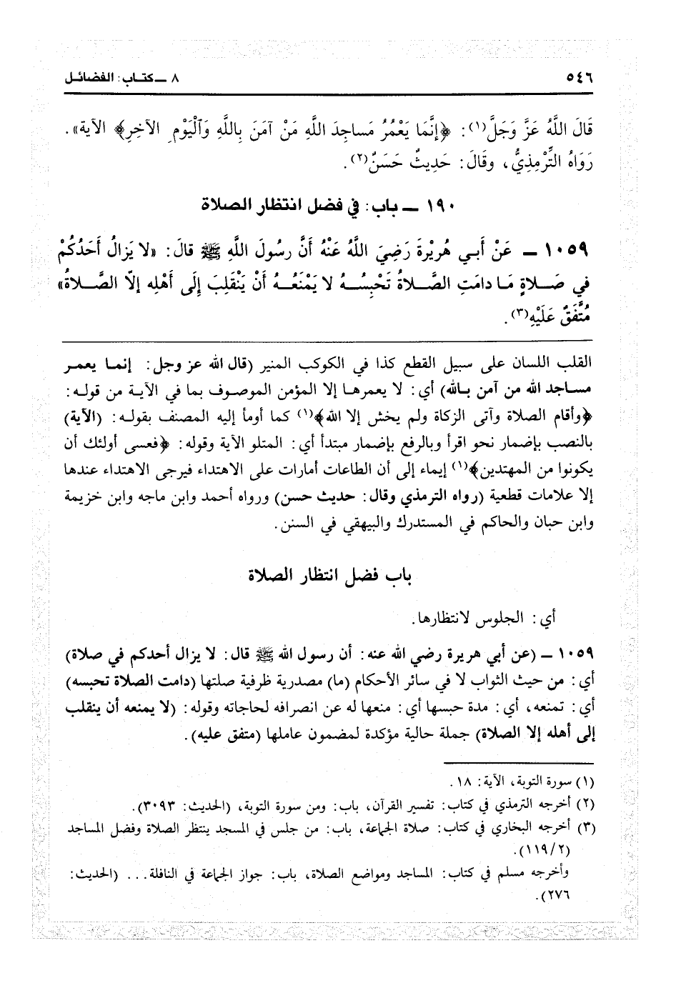 القلب اللسان على سبيل القطع كذا في «الكوكب المنير» (قال الله عزّ وجل) : ( {إنما يعمر مساجد الله من آمن بالله} ) أي لا يعمرها إلا المؤمن الموصوف بما في الآية من قوله: {وأقام الصلاة وآتى الزكاة ولم يخش إلا الله} (التوبة: 18) كما أومأ إليه المصنف بقوله (الآية) بالنصب بإضمار نحو اقرأ وبالرفع بإضمار مبتدأ: أي المتلو الآية وقوله: {فعسى أولئك أن يكونوا من المهتدين} (التوبة: 18) إيماء إلى أن الطاعات أمارات على الاهتداء فيرجى الاهتداء عندها لا علامات قطعية (رواه الترمذي وقال: حديث حسن) ورواه أحمد وابن ماجه وابن خزيمة وابن حبان والحاكم في «المستدرك» والبيهقي في «السنن» .