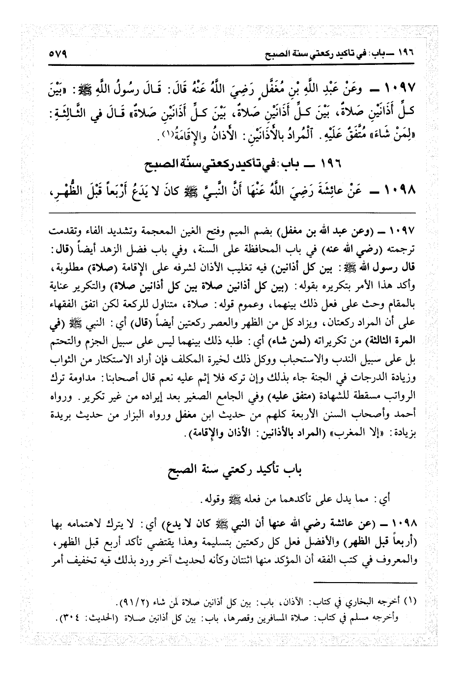 196 - باب تأكيد ركعتي سنة الصبح