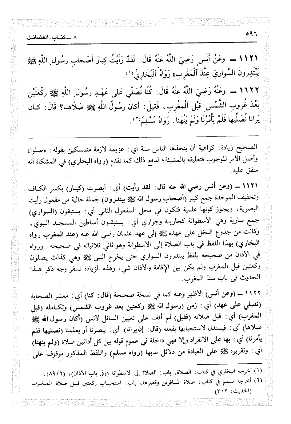 31124 - (وعن أنس) الأظهر وعنه كما في نسخة صحيحة (قال: كنا) أي معشر الصحابة (نصلى على عهد) أي زمن (رسول الله ركعتين بعد غروب الشمس) وتكامله (قبل المغرب) أي قبل صلاته (فقيل) لم أقف على تعيين السائل لأنس (أكان رسول الله صلاها) أي فيستدل لاستحبابها بفعله قال (كان يرانا) أي يبصرنا أو يعلمنا (نصليها فلم يأمرنا) أي بها على الانفراد وإلا فهي داخلة في عموم قوله «بين كل أذانين صلاة» (ولم ينهنا) أي وتقريره على العبادة من دلائل ندبها (رواه مسلم) واللفظ المذكور موقوف على