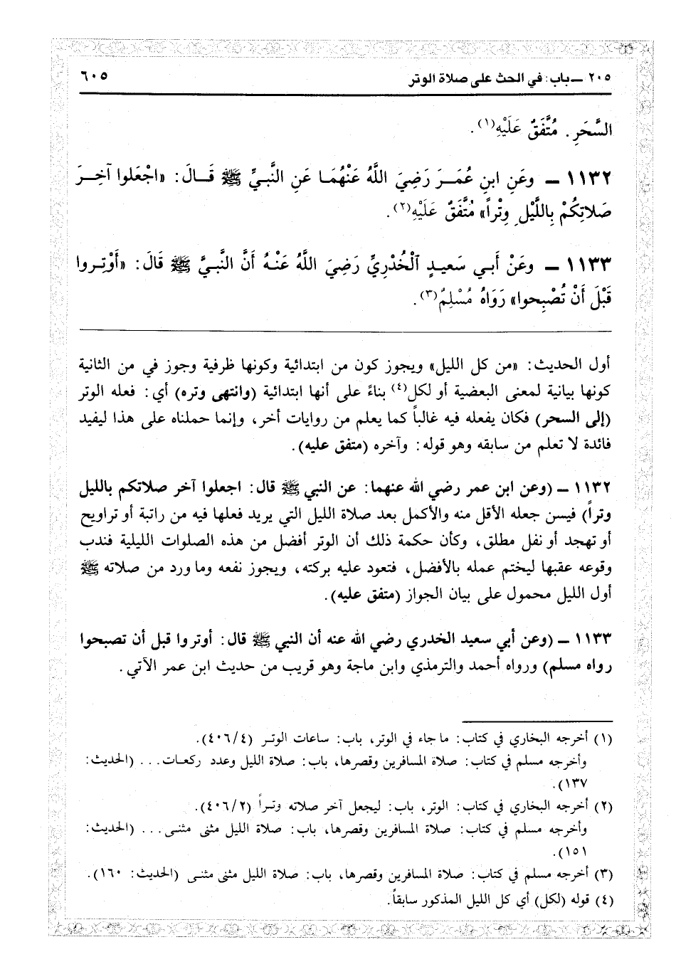 41135 - (وعن أبي سعيد الخدري رضي الله عنه أن النبيّ قال: أوتروا قبل أن تصبحوا. رواه مسلم) ورواه أحمد والترمذي وابن ماجه وهو قريب من حديث ابن عمر الآتي.