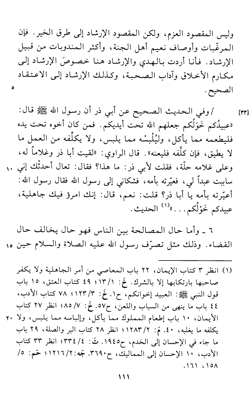 (¬1) انظر 3 كتاب الإيمان، 22 باب المعاصي من أمر الجاهلية ولا يكفر صاحبها بارتكابها إلا بالشرك. خَ: 1/ 13؛ 49 كتاب العتق، 15 باب قول النبي - صلى الله عليه وسلم -: العبيد إخوانكم، ح 1. خَ: 3/ 123؛ 78 كتاب الأدب، 44 باب ما ينهى من السباب واللعن، ح 57. خَ: 7/ 85؛ انظر 27 كتاب الأيمان، 10 باب إطعام المملوك مما يأكل، وإلباسه مما يلبس، ولا يكلفه ما يغلبه، 40. مَ: 2/ 1283؛ انظر 28 كتاب البر والصلة، 29 باب ما جاء في الإحسان إلى الخدم، ح 1945. تَ: 4/ 334؛ انظر 33 كتاب الأدب، 10 الإحسان إلى المماليك، ح 3690. جَه: 2/ 1216؛ حَم: 5/ 158: 161.