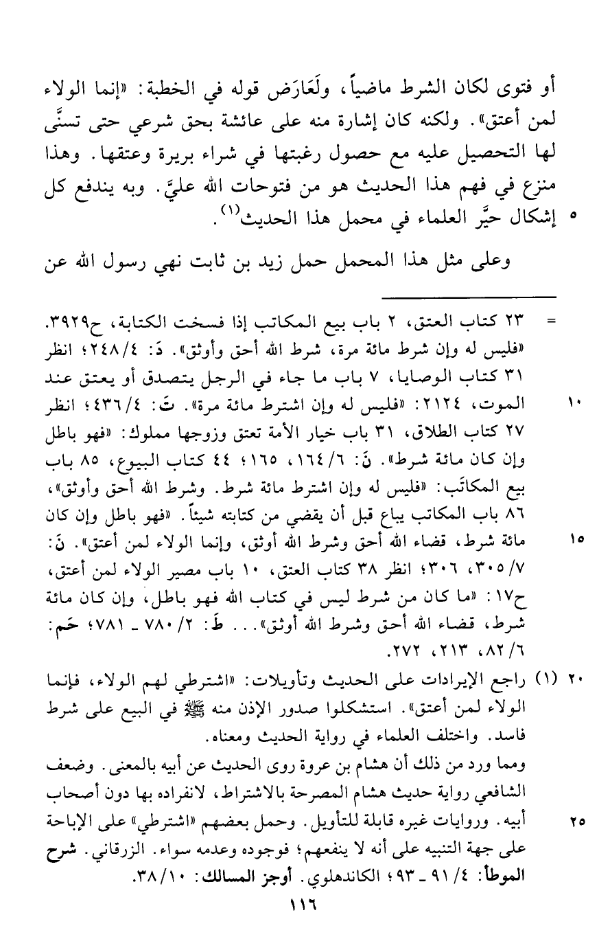 (¬1) راجع الإيرادات على الحديث وتأويلات: "اشترطي لهم الولاء، فإنما الولاء لمن أعتق". استشكلوا صدور الإذن منه - صلى الله عليه وسلم - في البيع على شرط فاسد. واختلف العلماء في رواية الحديث ومعناه.