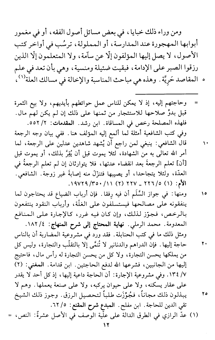 ومن وراء ذلك خبايا، في بعض مسائل أصول الفقه، أو في مغمور أبوابها المهجورة عند المدارسة، أو المملولة، ترسُب في أواخر كتب الأصول، لا يصل إليها المؤلفون إلّا عن سآمة، ولا المتعلمون إلّا الذين رزقوا الصبر على الإدامة، فبقيت ضئيلة ومنسية، وهي بأن تعد في علم المقاصد حَرِيَّة. وهذه هي مباحث المناسبة والإخالة في مسالك العلة (¬1)،