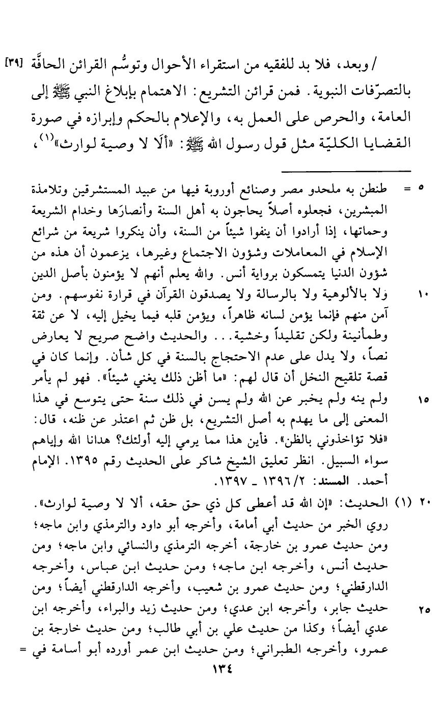 وبعد، فلا بد للفقيه من استقراء الأحوال وتوسُّم القرائن الحافَّة بالتصرّفات النبوية. فمن قرائن التشريع: الاهتمام بإبلاع النبي - صلى الله عليه وسلم - إلى العامة، والحرص على العمل به، والإعلام بالحكم وإبرازه في صورة القضايا الكليّة مثل قول رسول الله - صلى الله عليه وسلم -: "ألَا لا وصية لوارث" (¬1)،