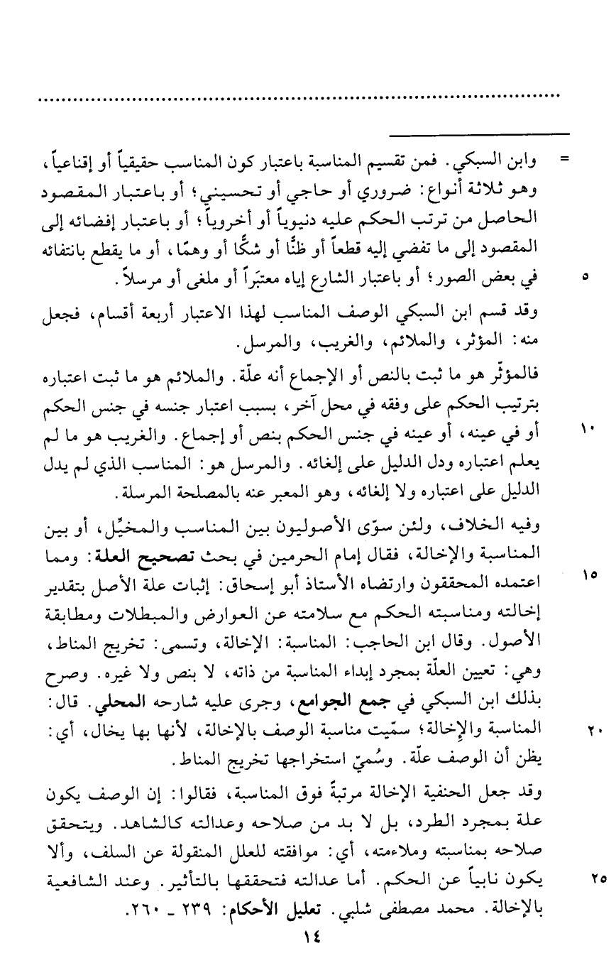وقد جعل الحنفية الإخالة مرتبةً فوق المناسبة، فقالوا: إن الوصف يكون علة بمجرد الطرد، بل لا بد من صلاحه وعدالته كالشاهد. ويتحقق صلاحه بمناسبته وملاءمته، أي: موافقته للعلل المنقولة عن السلف، وألا يكون نابياً عن الحكم. أما عدالته فتحققها بالتأثير. وعند الشافعية بالإخالة. محمد مصطفى شلبي. تعليل الأحكام: 239 - 260.