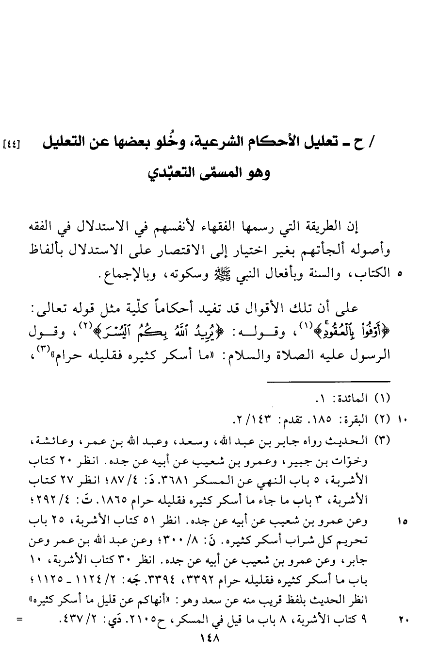ح - تعليل الأحكام الشرعية، وخُلو بعضها عن التعليل وهو المسمّى التعبّدي