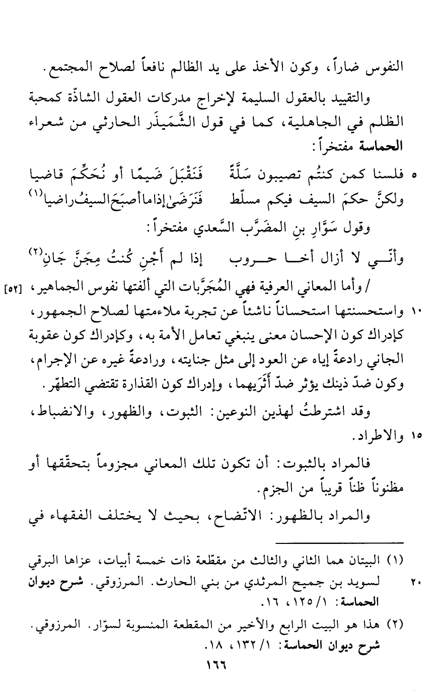 والتقييد بالعقول السليمة لإخراج مدركات العقول الشاذّة كمحبة الظلم في الجاهلية، كما في قول الشَّمَيذَر الحارثي من شعراء الحماسة مفتخراً: