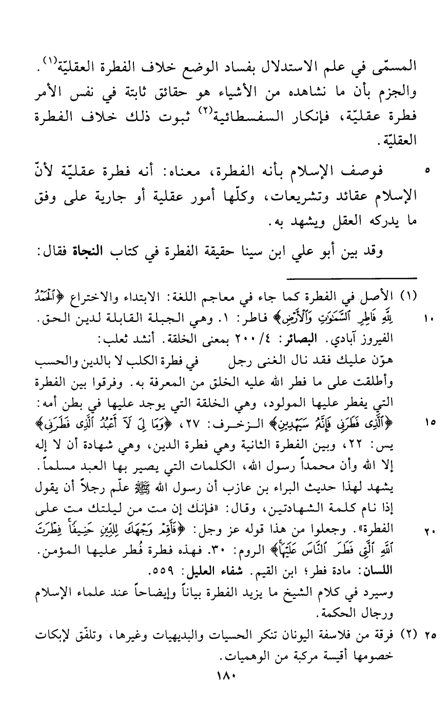 وسيرد في كلام الشيخ ما يزيد الفطرة بياناً وإيضاحاً عند علماء الإسلام ورجال الحكمة.
