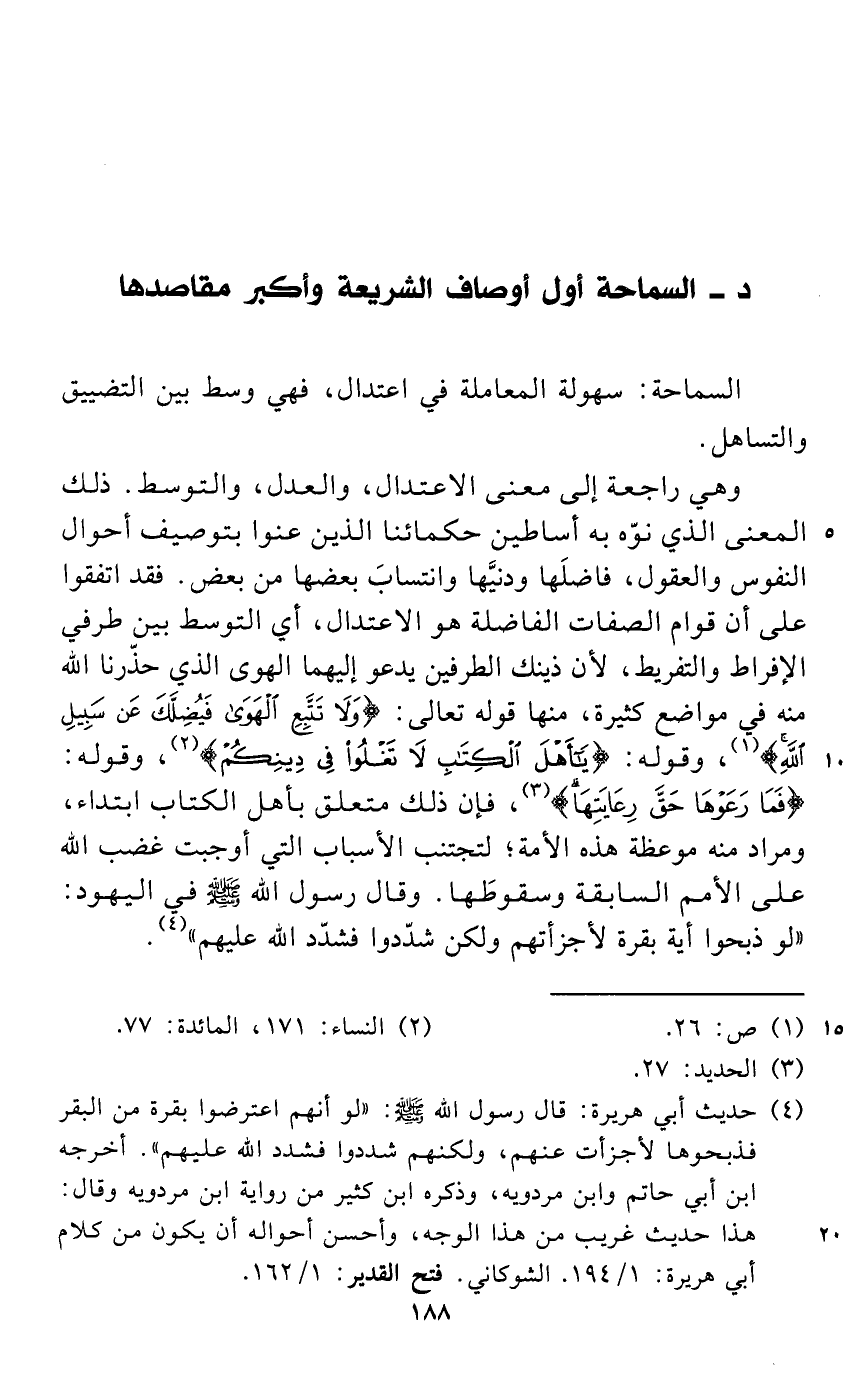 د - السماحة أول أوصاف الشريعة وأكبر مقاصدها