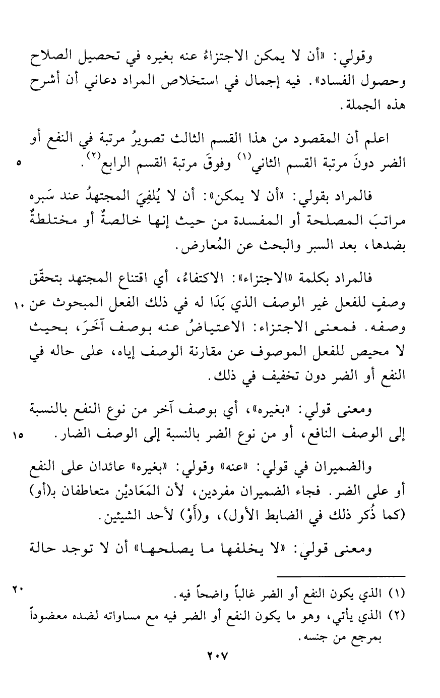 وقولي: "أن لا يمكن الاجتزاءُ عنه بغيره في تحصيل الصلاح وحصول الفساد". فيه إجمال في استخلاص المراد دعاني أن أشرح هذه الجملة.