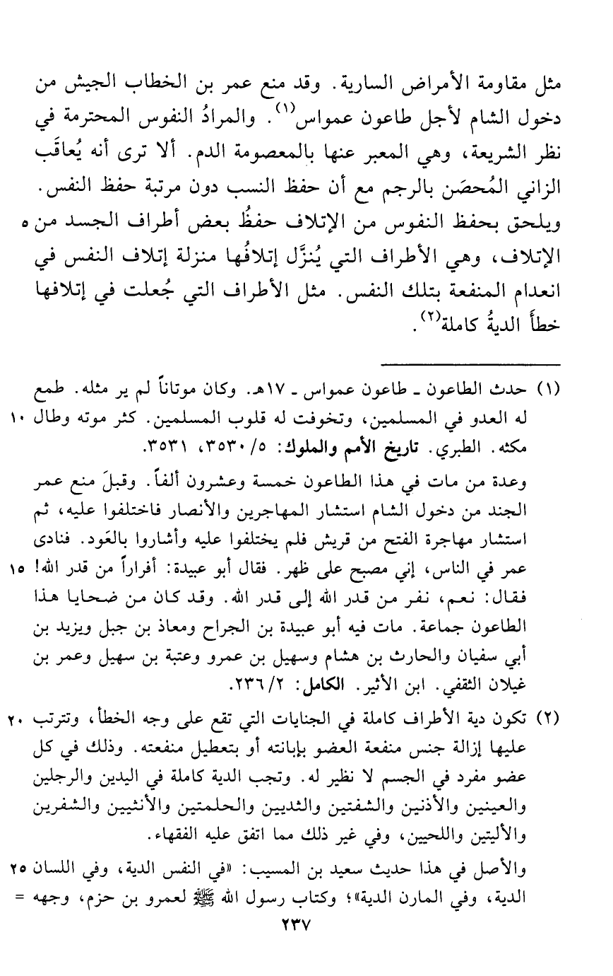 (¬1) حدث الطاعون - طاعون عمواس - 17 هـ. وكان موتاناً لم ير مثله. طمع له العدو في المسلمين، وتخوفت له قلوب المسلمين. كثر موته وطال مكثه. الطبري. تاريخ الأمم والملوك: 5/ 3530، 3531.