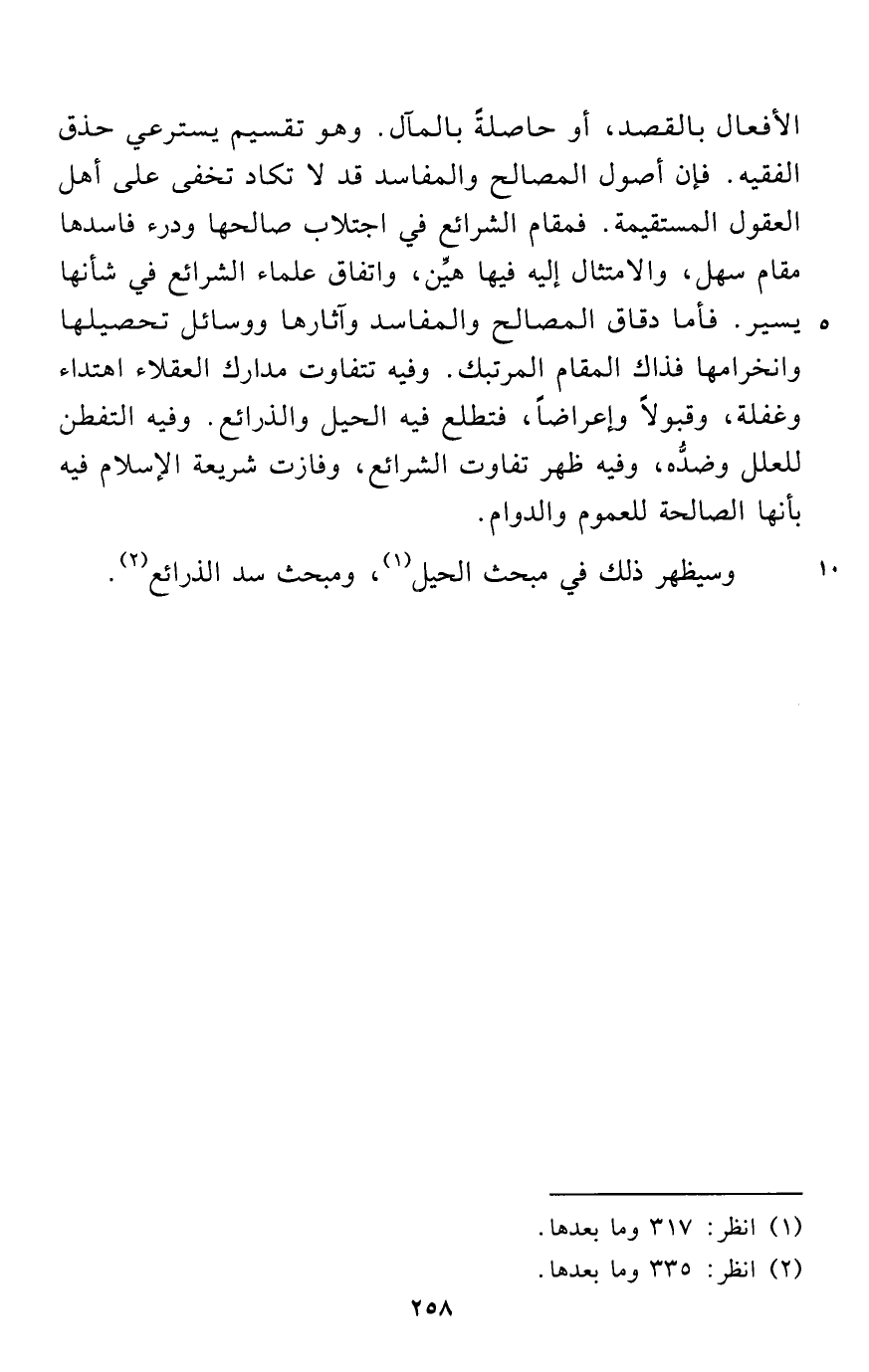 الأفعال بالقصد، أو حاصلةً بالمآل. وهو تقسيم يسترعي حذق الفقيه. فإن أصول المصالح والمفاسد قد لا تكاد تخفى على أهل العقول المستقيمة. فمقام الشرائع في اجتلاب صالحها ودرء فاسدها مقام سهل، والامتثال إليه فيها هيَّن، واتفاق علماء الشرائع في شأنها يسير. فأما دقاق المصالح والمفاسد وآثارها ووسائل تحصيلها وانخرامها فذاك المقام المرتبك. وفيه تتفاوت مدارك العقلاء اهتداء وغفلة، وقبولاً وإعراضاً، فتطلع فيه الحيل والذرائع. وفيه التفطن للعلل وضدُّه، وفيه ظهر تفاوت الشرائع، وفازت شريعة الإسلام فيه بأنها الصالحة للعموم والدوام.