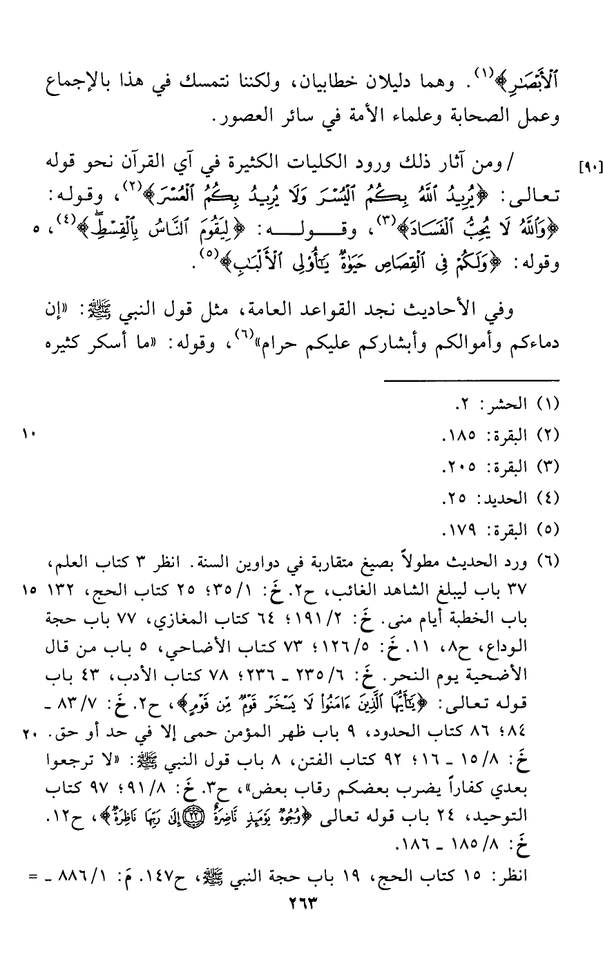 (¬6) ورد الحديث مطولاً بصيغ متقاربة في دواوين السنة. انظر 3 كتاب العلم، 37 باب ليبلغ الشاهد الغائب، ح 2. خَ: 1/ 35؛ 25 كتاب الحج، 132 باب الخطبة أيام منى. خَ: 2/ 191؛ 64 كتاب المغازي، 77 باب حجة الوداع، ح 8، 11. خَ: 5/ 126؛ 73 كتاب الأضاحي، 5 باب من قال الأضحية يوم النحر. خَ: 6/ 235 - 236؛ 78 كتاب الأدب، 43 باب قوله تعالى: {يَا أَيُّهَا الَّذِينَ آمَنُوا لَا يَسْخَرْ قَوْمٌ مِنْ قَوْمٍ}، ح 2. خَ: 7/ 83 - 84؛ 86 كتاب الحدود، 9 باب ظهر المؤمن حمى إلا في حد أو حق. خَ: 8/ 15 - 16؛ 92 كتاب الفتن، 8 باب قول النبي - صلى الله عليه وسلم -: "لا ترجعوا بعدي كفاراً يضرب بعضكم رقاب بعض"، ح 3. خَ: 8/ 91؛ 97 كتاب التوحيد، 24 باب قوله تعالى {وُجُوهٌ يَوْمَئِذٍ نَاضِرَةٌ (22) إِلَى رَبِّهَا نَاظِرَةٌ}، ح 12. خَ: 8/ 185 - 186.
