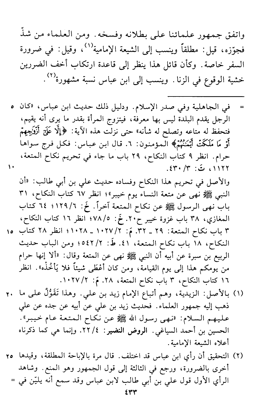(¬1) بالأصل: الزيدية، وهم أتباع الإِمام زيد بن علي. وهذا تَقَوُّلٌ على ما ذهب إليه جمهور العلماء. فحديث زيد بن علي عن أبيه عن جده عن علي عليهم السلام: "نهى رسول الله - صلى الله عليه وسلم - عن نكاح المتعة عام خيبر". الحسين بن أحمد السياغي. الروض النضير: 4/ 22. وإنما هي كما ذكرناه أعلاه الشيعة الإمامية.