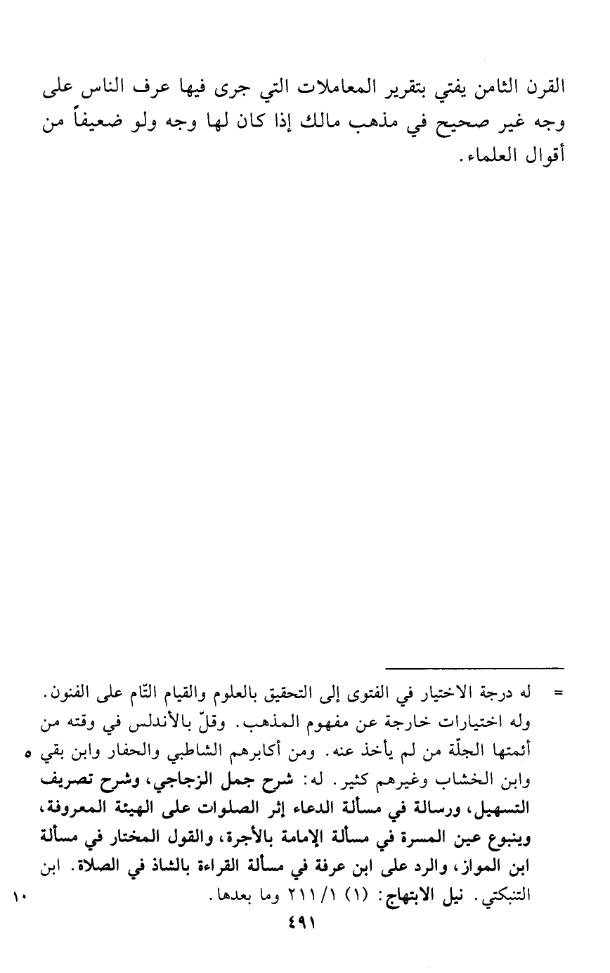 القرن الثامن يفتي بتقرير المعاملات التي جرى فيها عرف الناس على وجه غير صحيح في مذهب مالك إذا كان لها وجه ولو ضعيفاً من أقوال العلماء.
