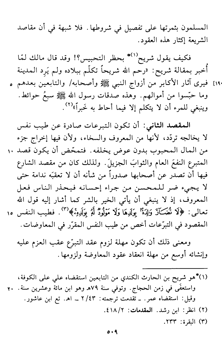 (¬1) * هو شريح بن الحارث الكندي من التابعين استقضاه علي على الكوفة، واستعفَى في زمن الحجاج. وتوفي سنة 79 هـ وهو ابن مائة وعشرين سنة. وقيل: استقضاه عمر.- تقدمت ترجمته: 43/ 2 - . اهـ. تع ابن عاشور.