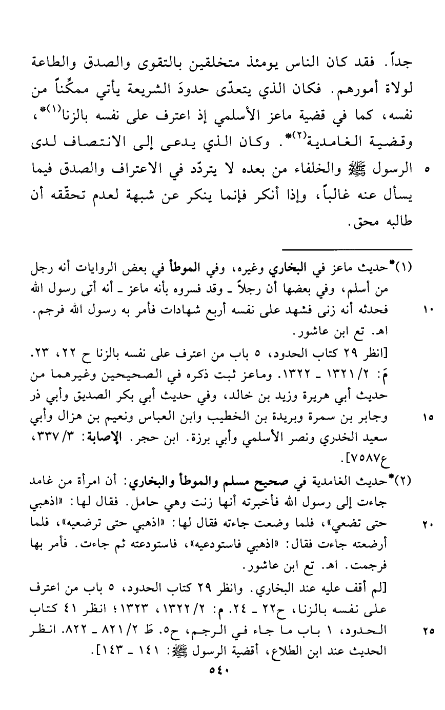 (¬2) * حديث الغامدية في صحيح مسلم والموطأ والبخاري: أن امرأة من غامد جاءت إلى رسول الله فأخبرته أنها زنت وهي حامل. فقال لها: "اذهبي حتى تضعي"، فلما وضعت جاءته فقال لها: "اذهبي حتى ترضعيه"، فلما أرضعته جاءت فقال: "اذهبي فاستودعيه"، فاستودعته ثم جاءت. فأمر بها فرجمت. اهـ. تع ابن عاشور.