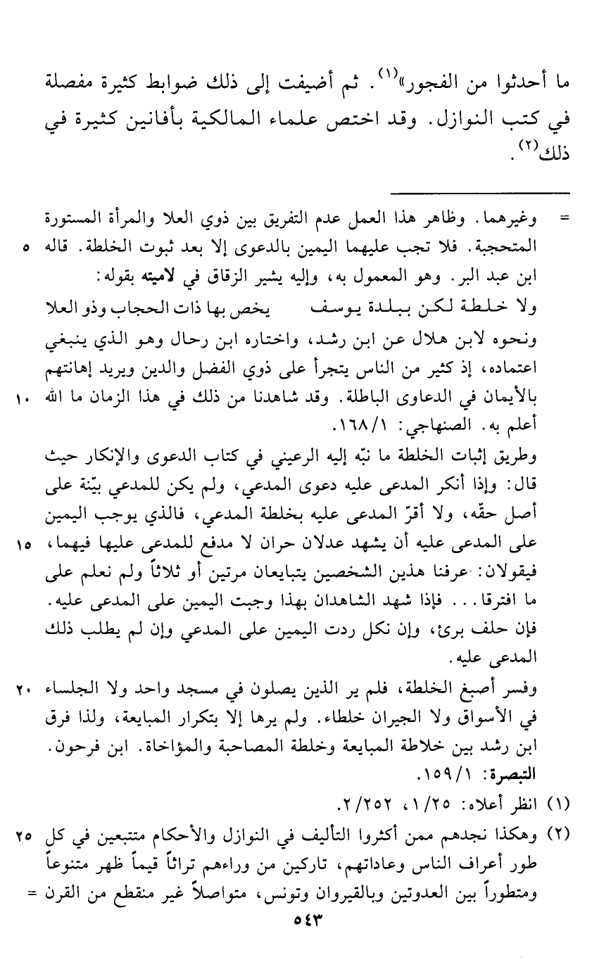 ونحوه لابن هلال عن ابن رشد، واختاره ابن رحال وهو الذي ينبغي اعتماده، إذ كثير من الناس يتجرأ على ذوي الفضل والدين ويريد إهانتهم بالأيمان في الدعاوى الباطلة. وقد شاهدنا من ذلك في هذا الزمان ما الله أعلم به. الصنهاجي: 1/ 168.