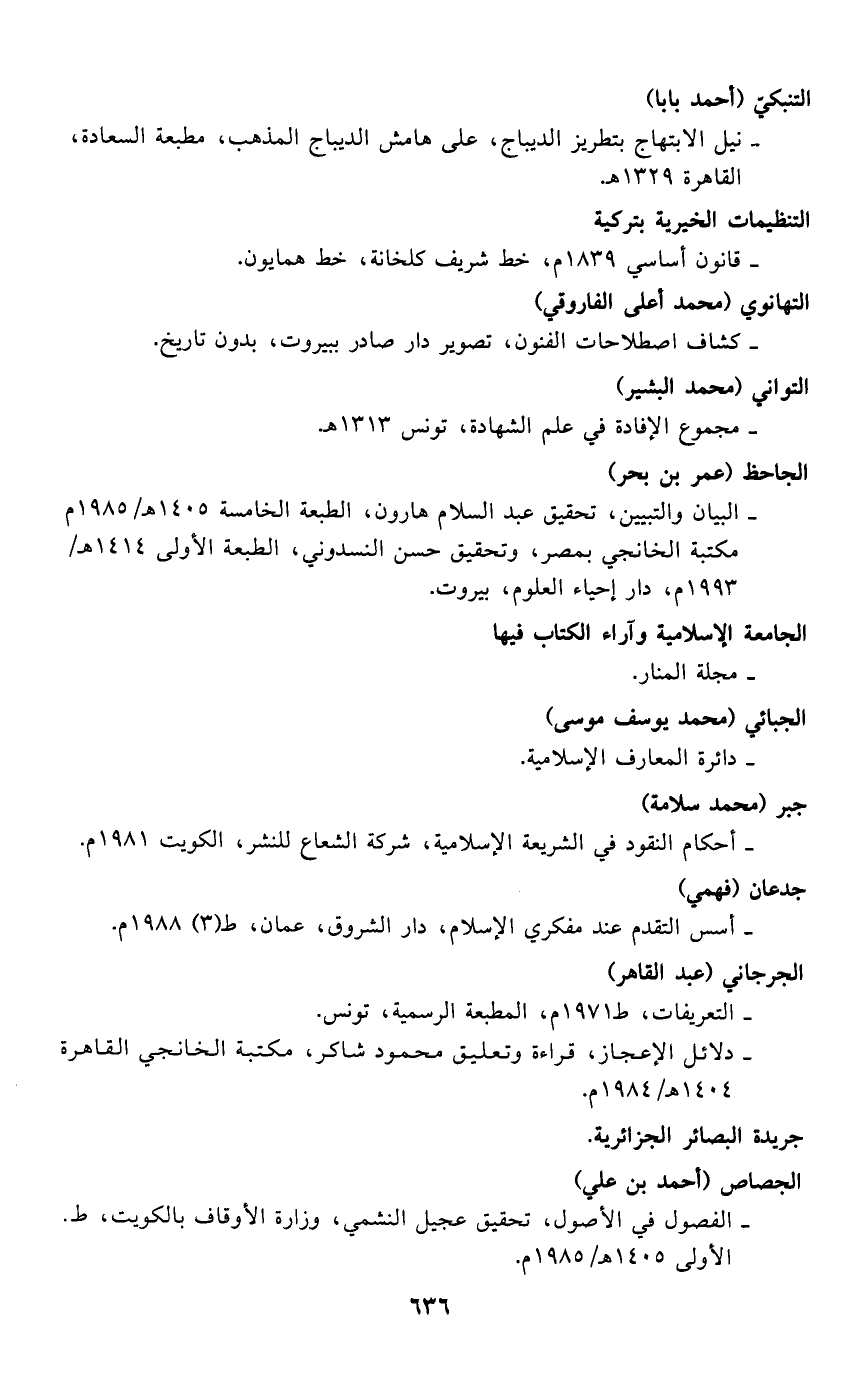- التعريفات، ط 1971 م، المطبعة الرسمية، تونس.