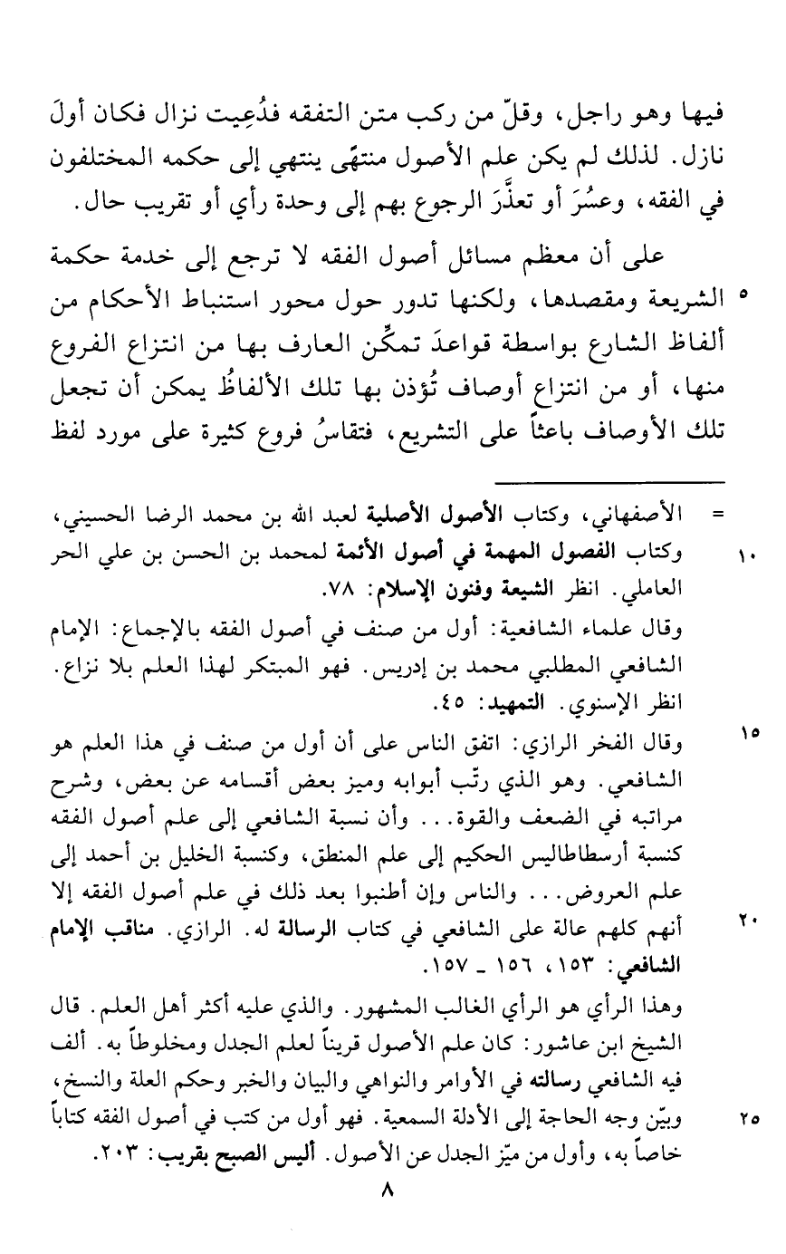 فيها وهو راجل، وقلّ من ركب متن التفقه فدُعِيت نزال فكان أولَ نازل. لذلك لم يكن علم الأصول منتهًى ينتهي إلى حكمه المختلفون في الفقه، وعسُرَ أو تعذَّرَ الرجوع بهم إلى وحدة رأي أو تقريب حال.