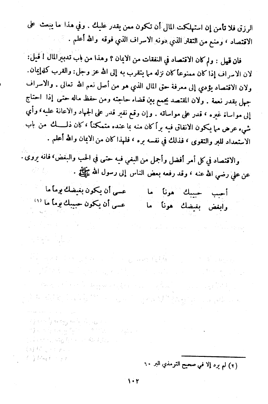 والاقتصاد في كل أمر أفضل وأجمل من البغي فيه حتى في الحب والبغض، فإنه يروى عن علي رضي الله عنه، وقد رفعه الناس إلى رسول الله صلى الله عليه وسلم.