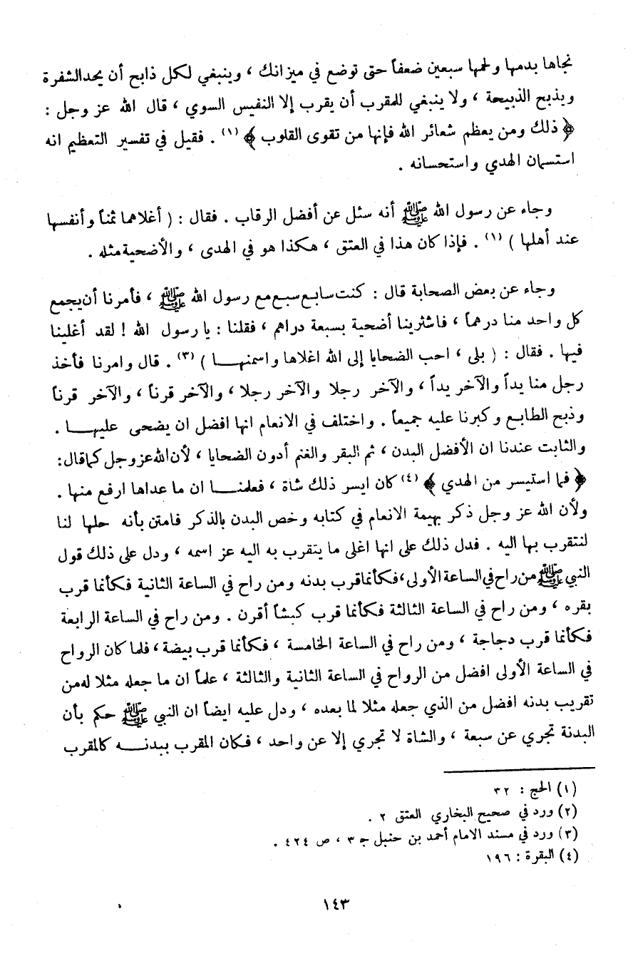 وجاء عن رسول الله صلى الله عليه وسلم أنه سئل عن أفضل الرقاب. فقال: (أغلاهما ثمنًا وأنفسها عند أهلها). فإذا كان هذا في العتق، هكذا هو في الهدي، والأضحية مثله.