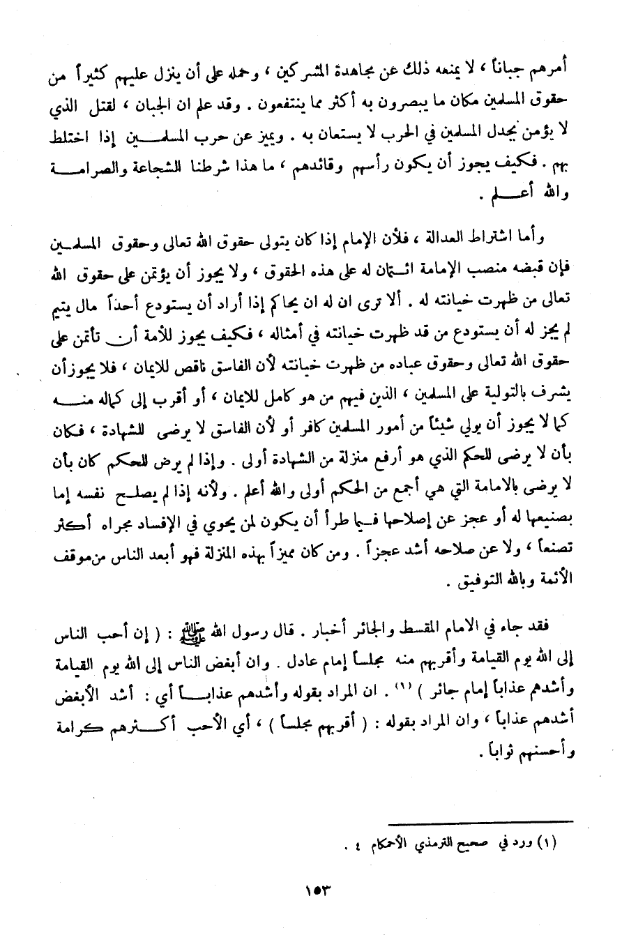 أمرهم جبانًا، لا يمنعه ذلك عن مجاهدة المشركين، وحمله على أن ينزل عليهم كثيرًا من حقوق المسلمين مكان ما يبصرون به أكثر مما ينتفعون. وقد علم أن الجبان، لقتل الذي لا يؤمن بجدل المسلمين في الحرب لا يستعان به. ويميز عن حرب المسلمين إذا اختلط بهم. فكيف يجوز أن يكون رأسهم وقائدهم، ما هذا شرطنا الشجاعة والصرامة والله أعلم.