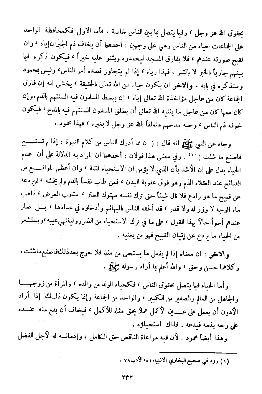 والآخر: أن معناه إذا لم يفعل ما يستحي من مثله فلا حرج بعد ذلك فاصنع ما شئت. وكلاهما حسن وحق، والله أعلم بما أراد رسوله صلى الله عليه وسلم.