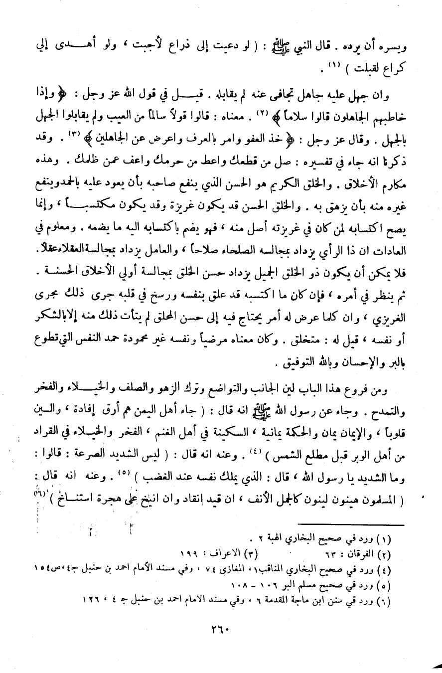 ومن فروع هذا الباب لين الجانب والتواضع وترك الزهو والصلف والخيلاء والفخر والتمدح. وجاء عن رسول الله صلى الله عليه وسلم أنه قال: (جاء أهل اليمن هم أرق إفادة، وألين قلوبًا، والإيمان يمان والحكمة يمانية، والسكينة في أهل الغنم، الفخر والخيلاء في القراد من أهل الوبر قبل مطلع الشمس). وعنه أنه قال: (ليس الشديد الصرعة: قالوا: وما الشديد يا رسول الله، قال: الذي يملك نفسه عند الغضب). وعنه أنه قال: (المسلمون هينون لينون كالجمل الأنف، إن قيد انقاد وأن أنيخ على هجرة استناخ).