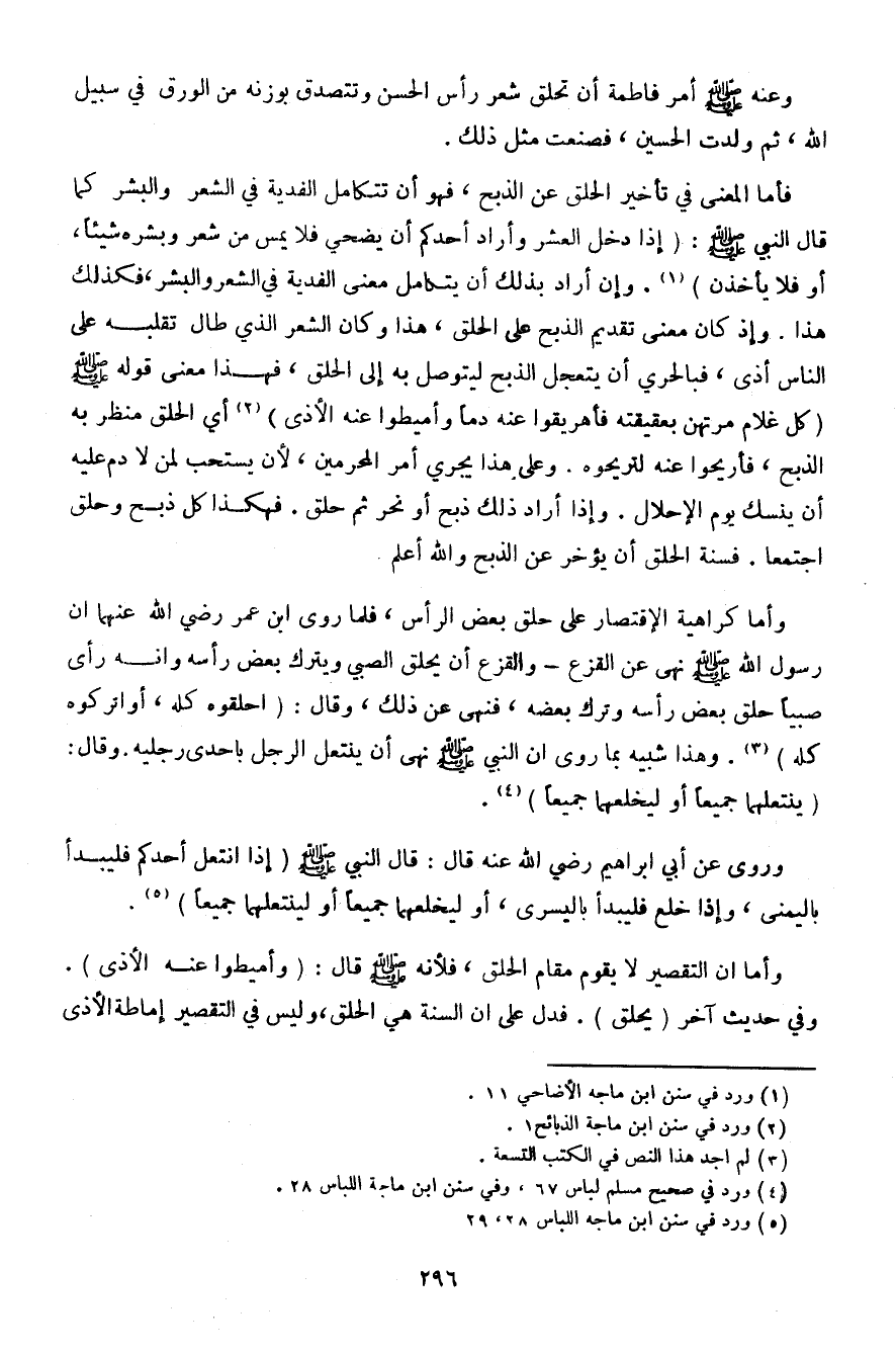 وأما كراهية الاقتصار على حلق بعض الرأس، فلما روى ابن عمر رضي الله عنهما أن رسول الله صلى الله عليه وسلم نهى عن القزع- والقزع أن يحلق الصبي ويترك بعض رأسه وأنه رأى صبيًا حلق بعض رأسه وترك بعضه، فنهى عن ذلك، وقال: (احلقوه كله، أو اتركوه كله). وهذا شبيه بما روى أن النبي صلى الله عليه وسلم نهى أن ينتعل الرجل بإحدى رجليه. وقال: (ينتعلهما جميعًا أو ليخلعهما جميعًا).