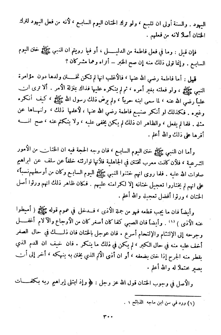 اليهود. والسنة أولى أن تتبع، ولو ترك الختان اليوم السابع، لأنه من فعل اليهود لترك الختان أصلًا لأنه من فعلهم.