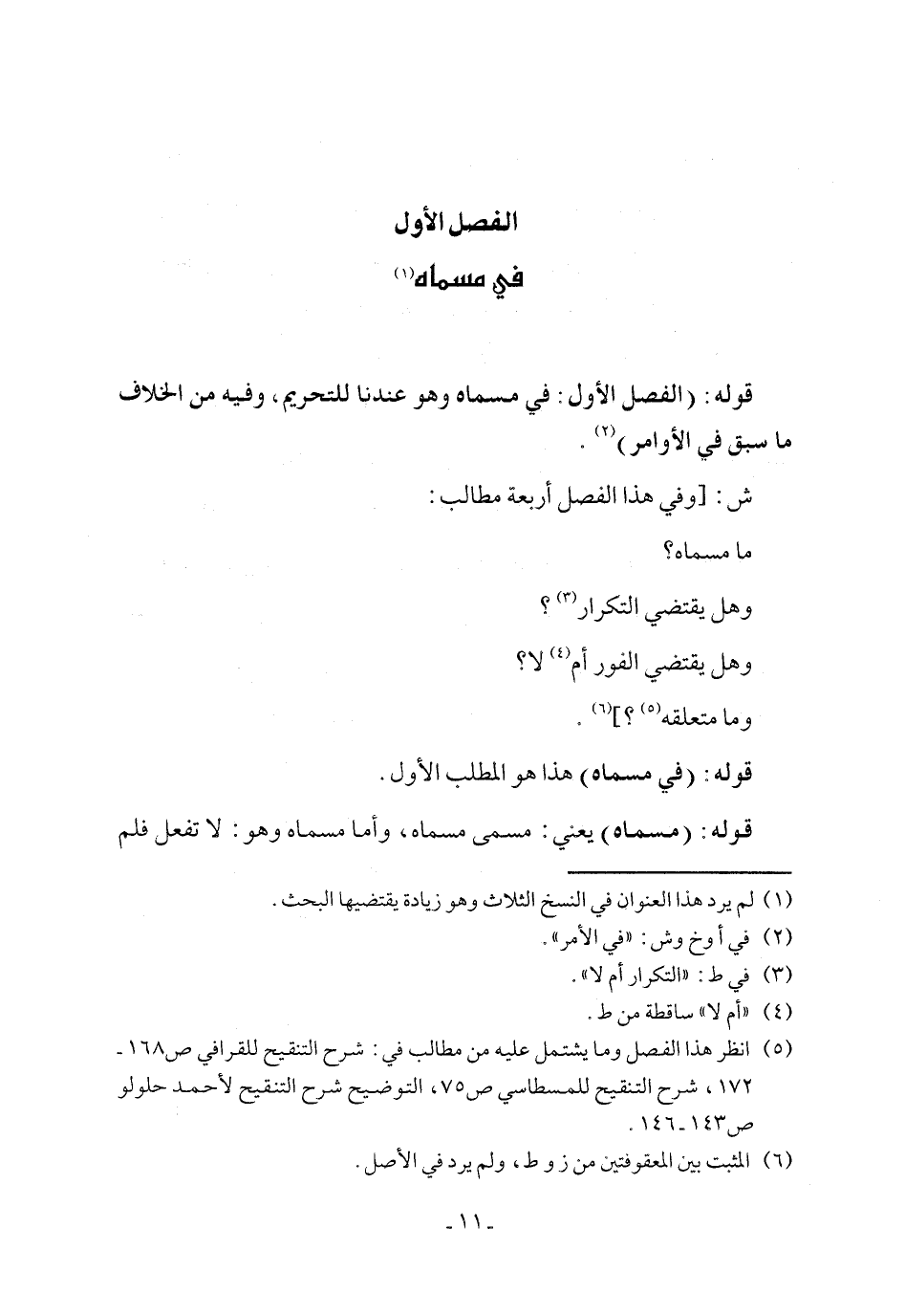 (٥) انظر هذا الفصل وما يشتمل عليه من مطالب في: شرح التنقيح للقرافي ص ١٦٨ - ١٧٢، شرح التنقيح للمسطاسي ص ٧٥، التوضيح شرح التنقيح لأحمد حلولو ص ١٤٣ - ١٤٦.