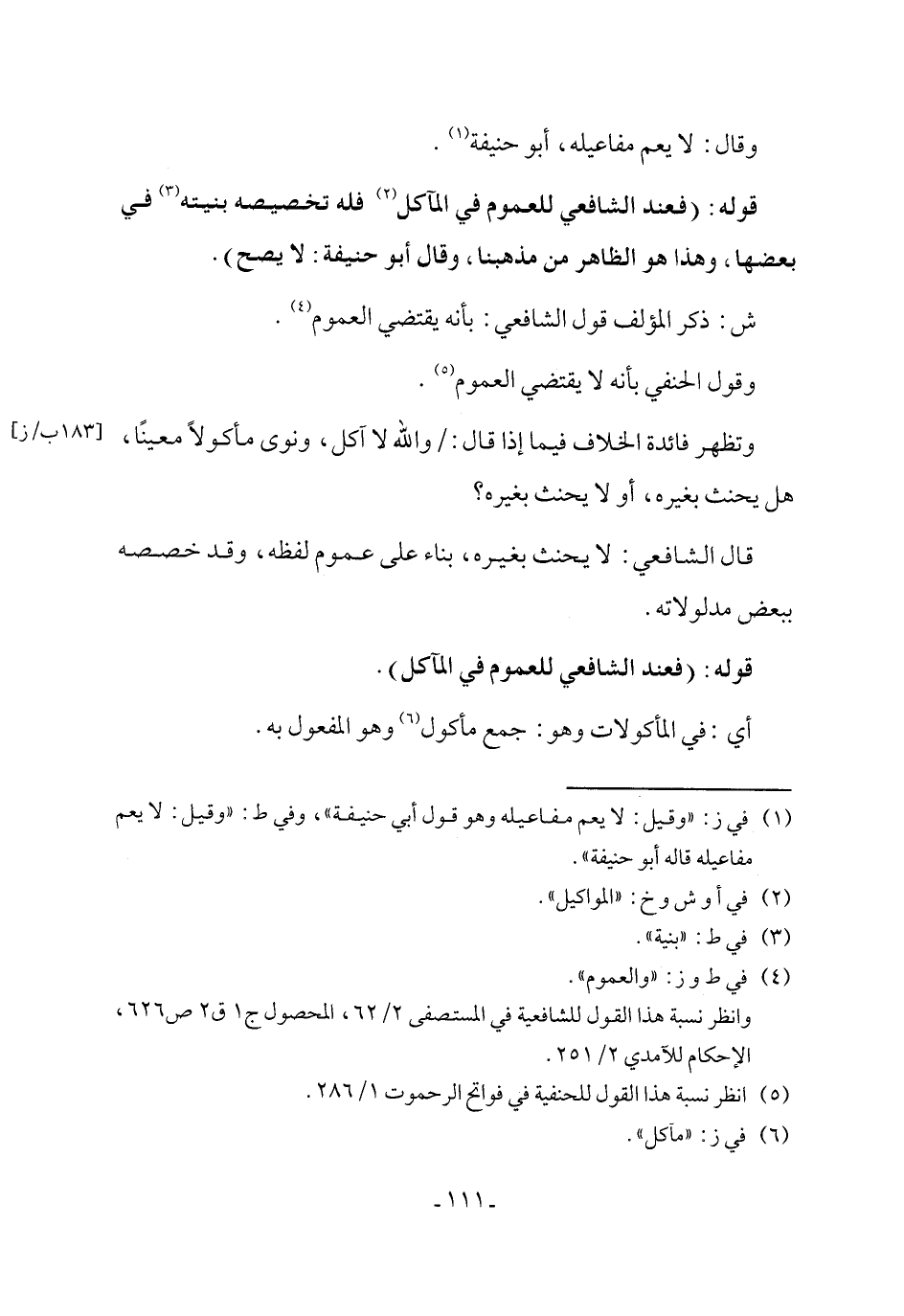 ش: ذكر المؤلف قول الشافعي: بأنه يقتضي العموم (٤).