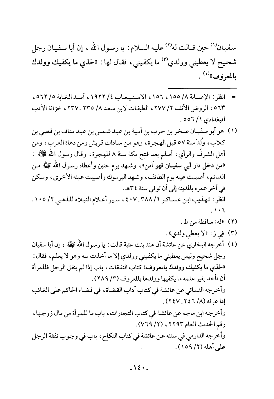 سفيان (١) حين قالت له (٢) عليه السلام: يا رسول الله، إن أبا سفيان رجل شحيح لا يعطيني وولدي (٣) ما يكفيني، فقال لها: "خذي ما يكفيك وولدك بالمعروف" (٤).