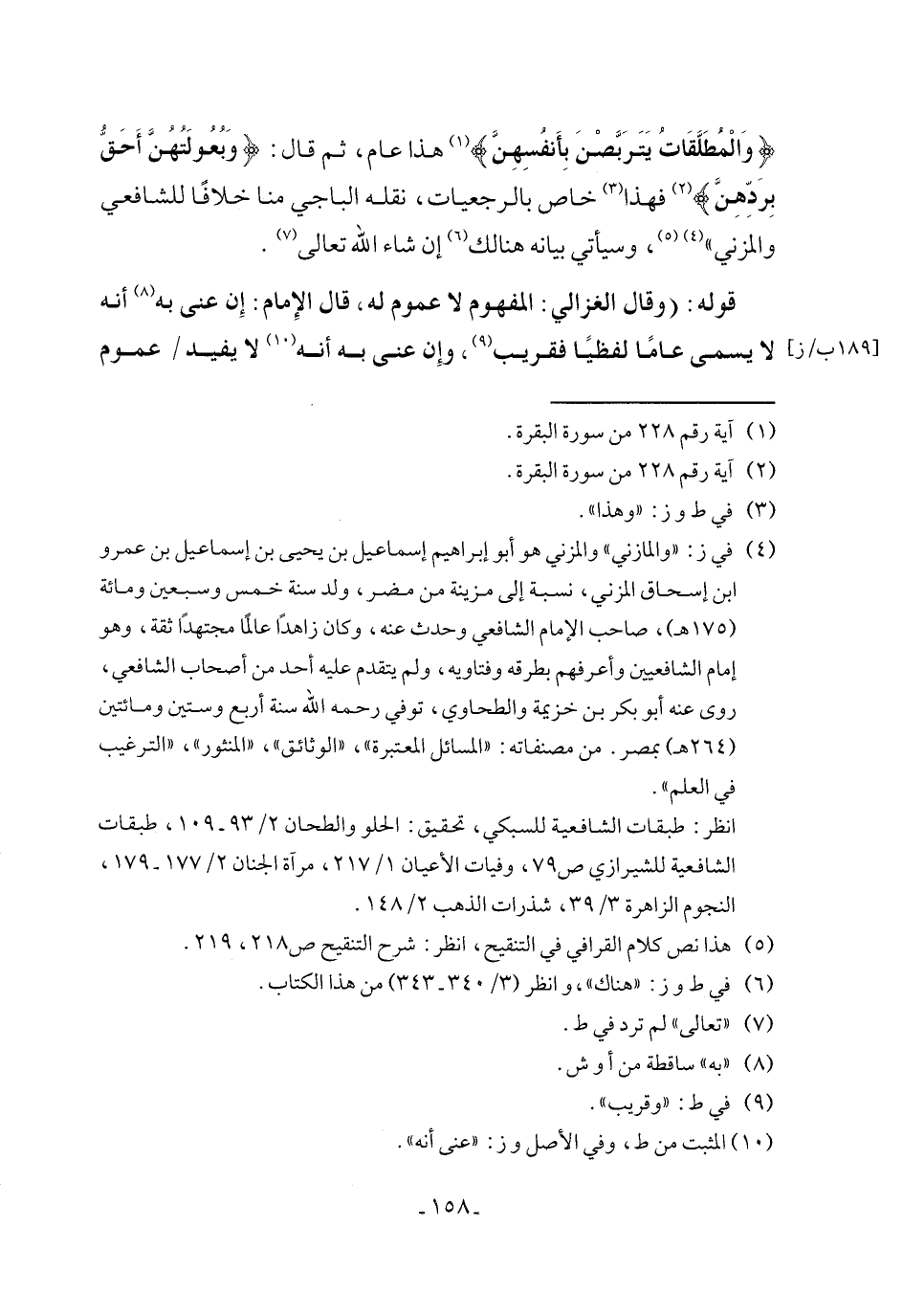 (٤) في ز: "والمازني" والمزني هو أبو إبراهيم إسماعيل بن يحيى بن إسماعيل بن عمرو ابن إسحاق المزني، نسبة إلى مزينة من مضر، ولد سنة خمس وسبعين ومائة (١٧٥ هـ)، صاحب الإمام الشافعي وحدث عنه، وكان زاهدًا عالمًا مجتهدًا ثقة، وهو إمام الشافعيين وأعرفهم بطرقه وفتاويه، ولم يتقدم عليه أحد من أصحاب الشافعي، روى عنه أبو بكر بن خزيمة والطحاوي، توفي رحمه الله سنة أربع وستين ومائتين (٢٦٤ هـ) بمصر. من مصنفاته: "المسائل المعتبرة"، "الوثائق"، "المنثور"، "الترغيب في العلم".