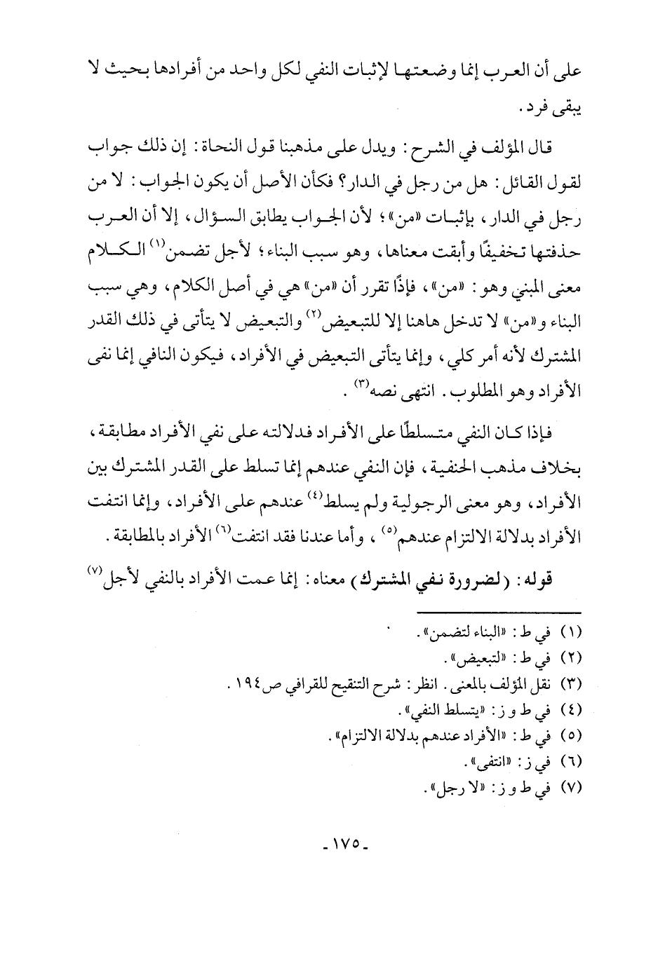 قوله: (لضرورة نفي المشترك) معناه: إنما عمت الأفراد بالنفي لأجل (٧)