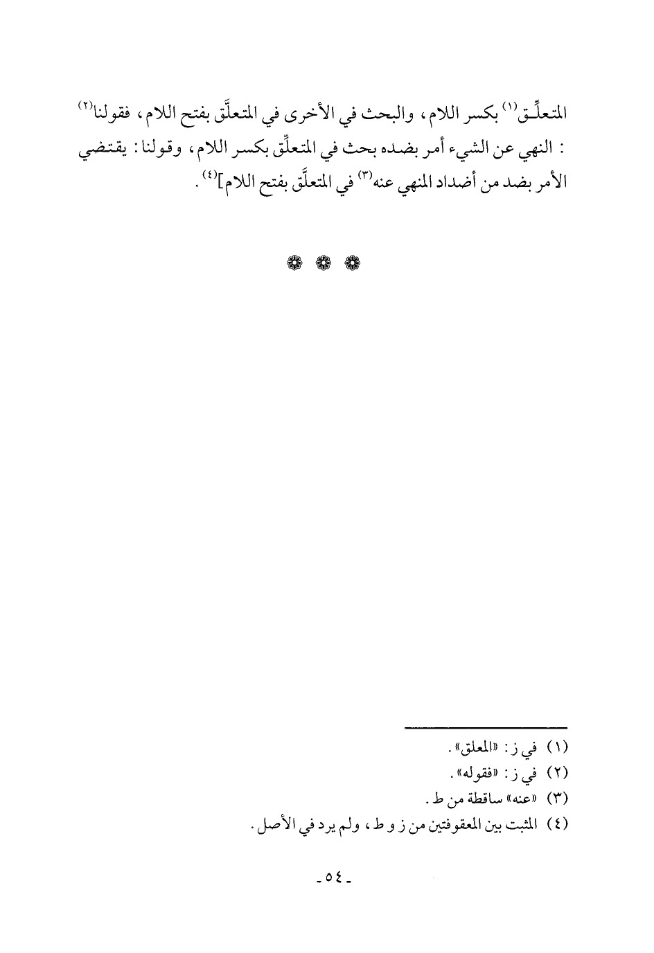 المتعلِّق (١) بكسر اللام، والبحث في الأخرى في المتعلَّق بفتح اللام، فقولنا (٢): النهي عن الشيء أمر بضده بحث في المتعلِّق بكسر اللام، وقولنا: يقتضي الأمر بضد من أضداد المنهي عنه (٣) في المتعلَّق بفتح اللام] (٤).