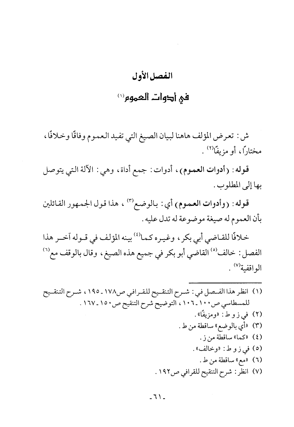 (١) انظر هذا الفصل في: شرح التنقيح للقرافي ص ١٧٨ - ١٩٥، شرح التنقيح للمسطاسي ص ١٠٠ - ١٠٦، التوضيح شرح التنقيح ص ١٥٠ - ١٦٧.