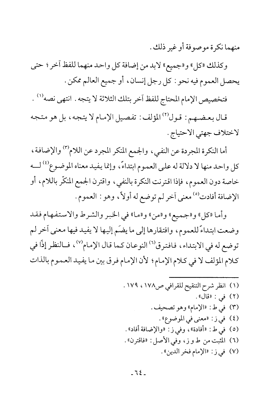 (١) انظر شرح التنقيح للقرافي ص ١٧٨، ١٧٩.