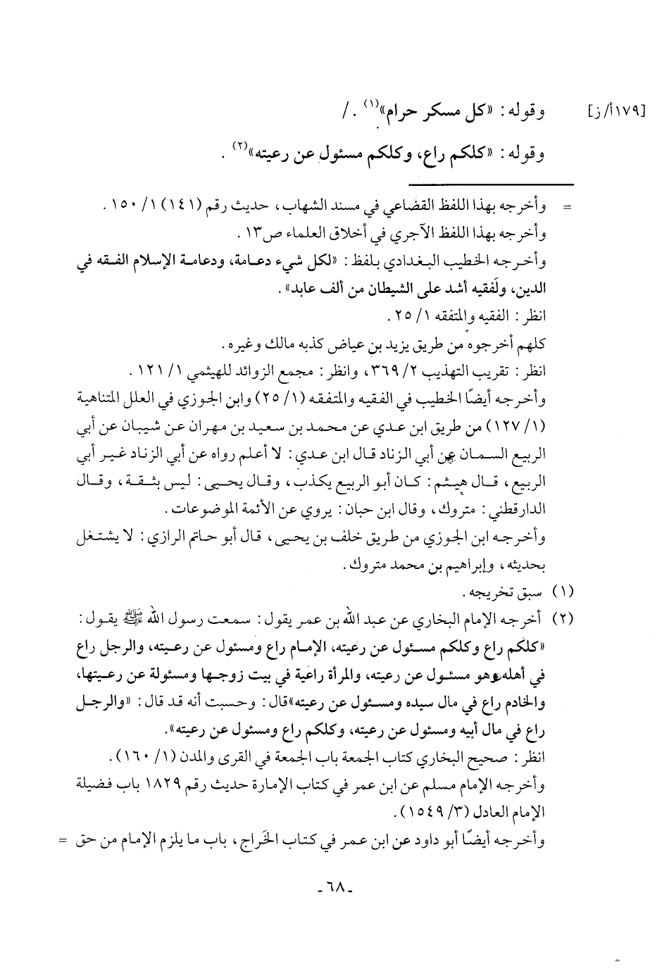 (٢) أخرجه الإمام البخاري عن عبد الله بن عمر يقول: سمعت رسول الله - صلى الله عليه وسلم - يقول: "كلكم راع وكلكم مسئول عن رعيته، الإمام راع ومسئول عن رعيته، والرجل راع في أهله وهو مسئول عن رعيته، والمرأة راعية في بيت زوجها ومسئولة عن رعيتها، والخادم راع في مال سيده ومسئول عن رعيته" قال: وحسبت أنه قد قال: "والرجل راع في مال أبيه ومسئول عن رعيته، وكلكم راع ومسئول عن رعيته".