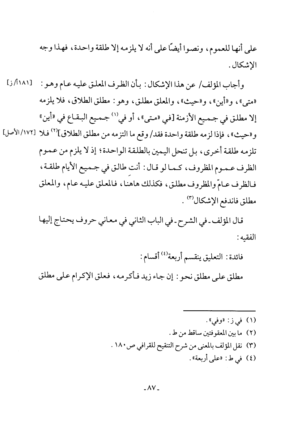 فائدة: التعليق ينقسم أربعة (٤) أقسام: