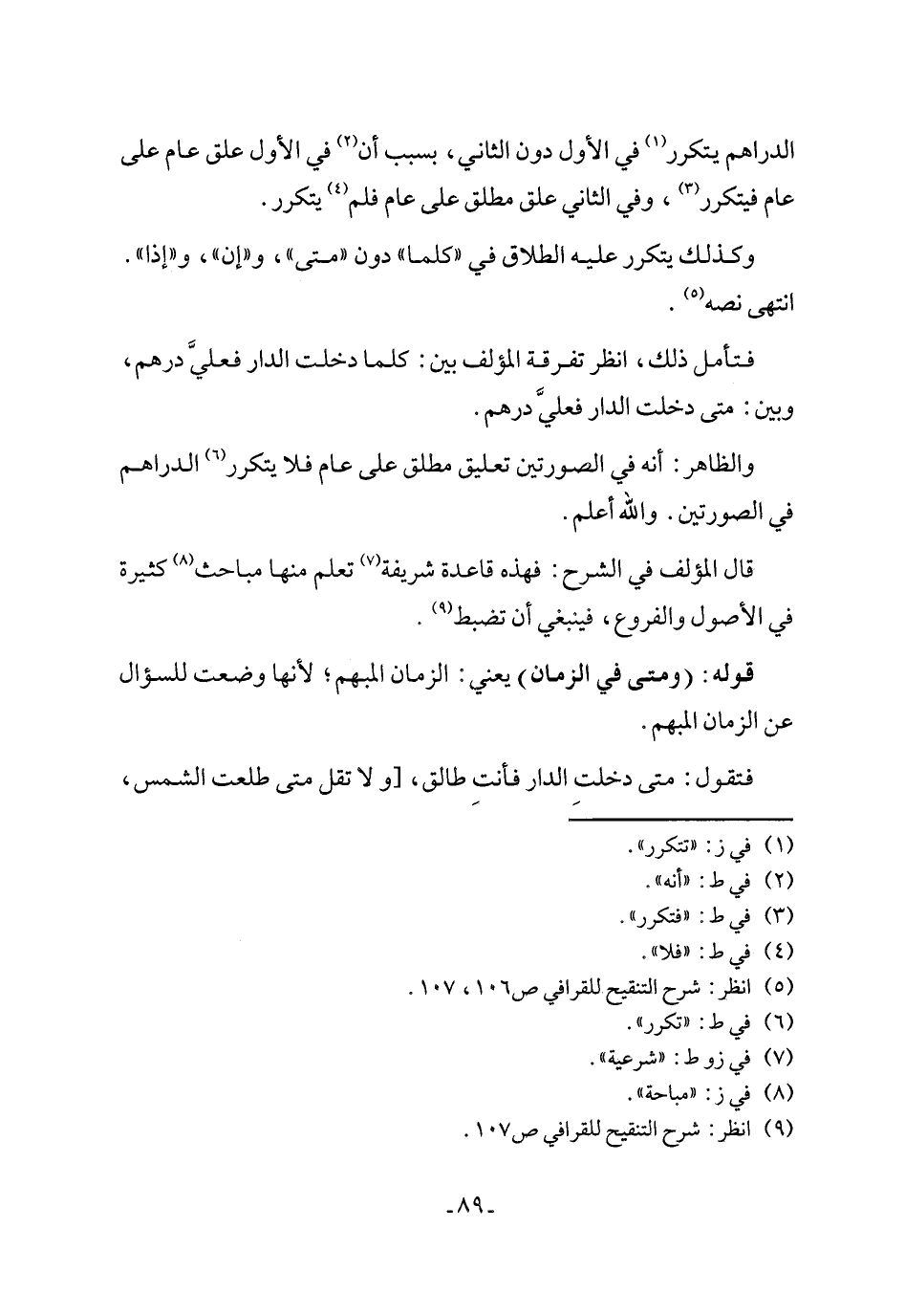 (٩) انظر: شرح التنقيح للقرافي ص ١٠٧.